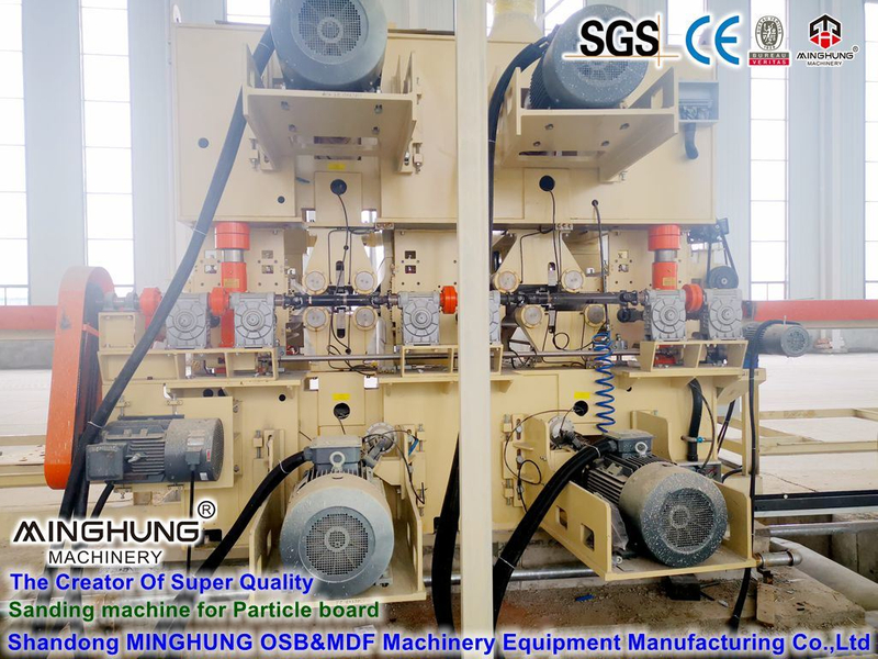 Bu, sunta, osb levha ve mdf levha yapmak için iki zımpara başlığına sahip çift taraflı zımpara makinesidir.Genellikle zımpara makinesi tek bir set olmaz ve her setin farklı işlevi vardır, bazıları kaba zımparalama için, bazıları ince zımparalama için zımparalama makinesidir, bu nedenle ahşap bazlı panel panelinizi kaliteli hale getirmek için genellikle tam zımparalama hattına ihtiyacınız vardır.