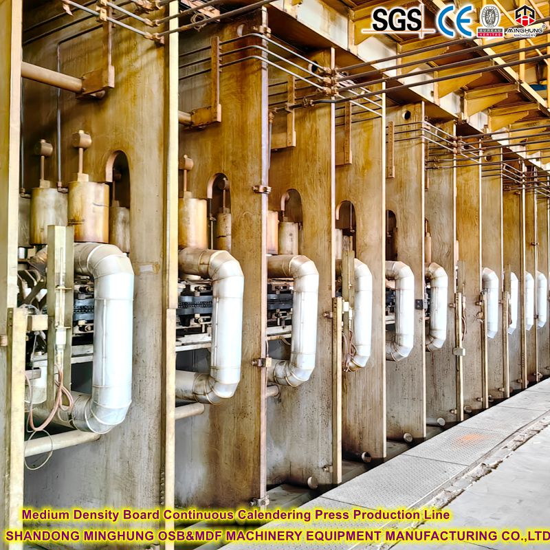 Sürekli hareket eden bir çelik kayış, oluşturulan mat yüksek sıcaklık (180-220 ° C) ve basınç (2.5-4.5 MPa) yoluyla taşır, bu da tek bir geçişte yapışkan kürleme ve panel konsolidasyonunu sağlar.
