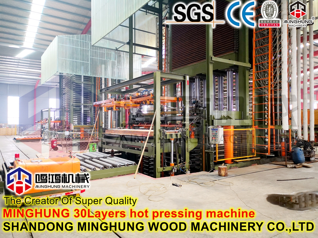 MINGHUNG MAKİNE sıcak pres makinesi kalın malzeme kullanır, toplam ağırlık ağır ve güçlüdür;kaliteli yağ silindirleri ve olgun hidrolik istasyon ve sistem kullanarak, Siemens motorları ve cnc ekranı ve Schneider elektrikli parçaları kullanarak;kaliteli ve sağlam ocaklar kullanmak;Bu nedenle, sıcak pres makinemizin ömrü daha uzundur ve çalışma performansı, kaliteli kontrplak üretmenize yardımcı olmak için çok iyi olacaktır.