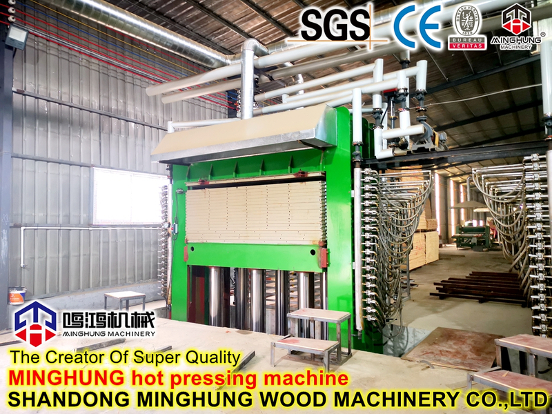 MINGHUNG MAKİNE sıcak pres makinesi kalın malzeme kullanır, toplam ağırlık ağır ve güçlüdür;kaliteli yağ silindirleri ve olgun hidrolik istasyon ve sistem kullanarak, Siemens motorları ve cnc ekranı ve Schneider elektrikli parçaları kullanarak;kaliteli ve sağlam ocaklar kullanmak;Bu nedenle, sıcak pres makinemizin ömrü daha uzundur ve çalışma performansı, kaliteli kontrplak üretmenize yardımcı olmak için çok iyi olacaktır.