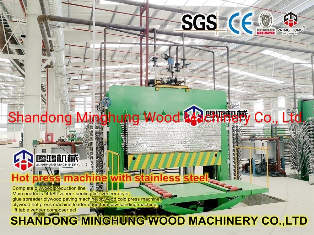 Mobilya kontrplak, inşaat kontrplak, marin kontrplak, hidrolik sıcak pres makinesi gibi kontrplak çeşitlerinin üretilmesi gerekli ve önemli makinedir. Sıcak Pres's yapı karmaşık değil, temel olarak şunlardan oluşur: makine çerçevesi, sıcak plakalar, hidrolik istasyon, silindir. Gerçek koşullara göre farklı basınç ve katmanlar olabilir. 500t, 600t, 800t, 1000t, 1200t.8 kat, 10 kat, 12 kat, 15 kat, 20 kat, 25 kat