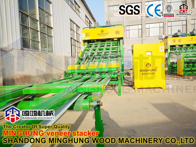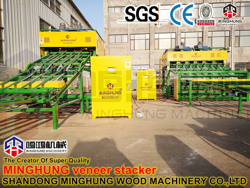 Soyma makinesinden sonra ahşap kaplamayı otomatik olarak sıralamak için vakumlu kaplama istifleyici, iki işçi maliyetinden tasarruf sağlayabilir ve çalışma verimliliğini artırabilir.