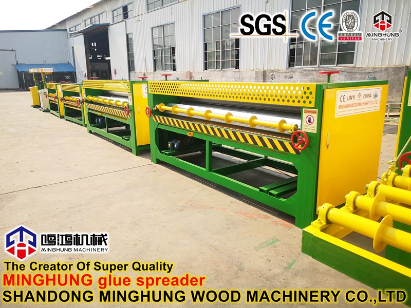 Tutkal yayıcının işlevi esas olarak kontrplak kaplamanın her iki tarafındaki yapıştırıcıyı kaplar, ardından işçiler bunları kontrplak boyutuna getirir.