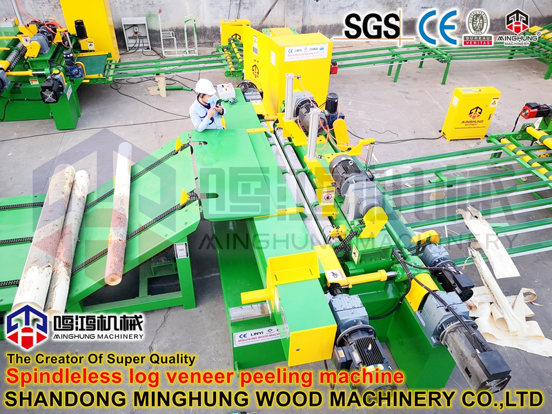 MINGHUNG kaplama döner kesme torna tezgahı, kaplama döner kesiminden sonra bıçağı değiştirmeyi daha uygun hale getiren hidrolik basınçlı bıçak yöntemini benimser.