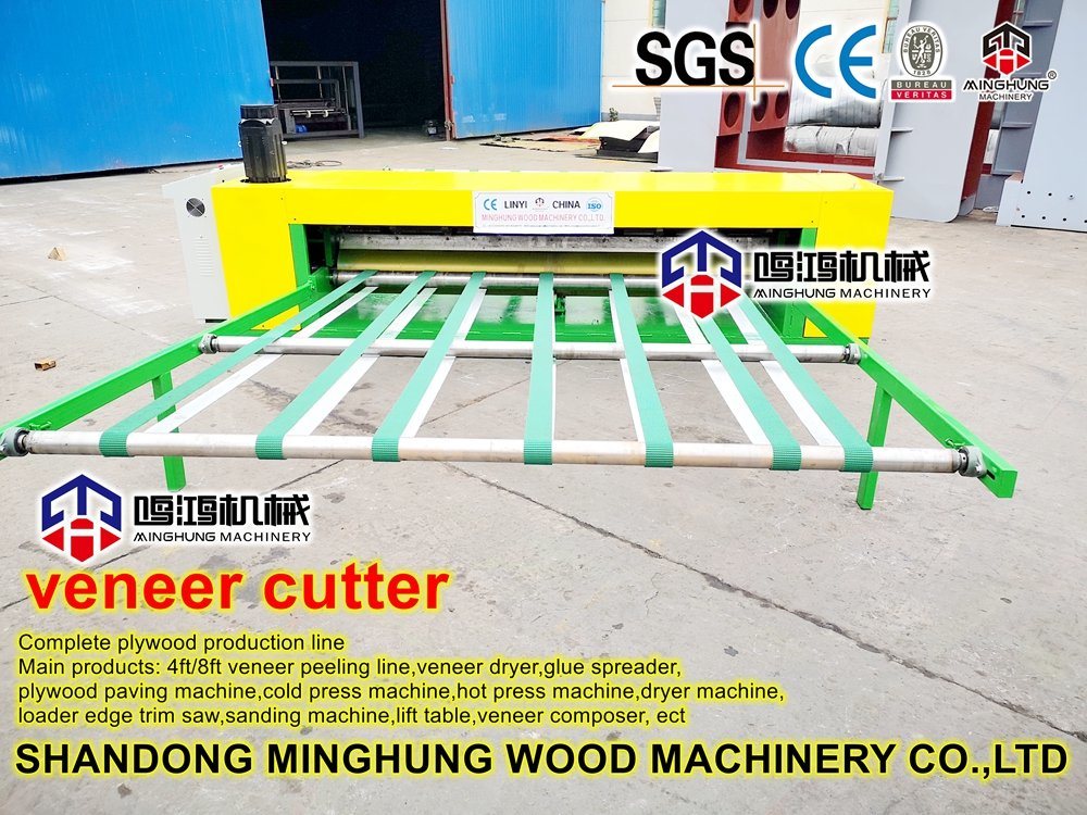 kesme bıçağı uygulaması ahşap kaplama soyma makinesi ile bağlanıyor, ahşabı ahşap kaplama parçalarına işledikten sonra, bu kesme bıçağı ahşabı istediğiniz genişliğe göre kesecek.standart boyutta 4 fit ve 8 fit vardır ve uzunluk da ihtiyaçlarınıza göre özelleştirilebilir. Kesme Bıçağı ile Döner Ahşap Kaplama Soyma