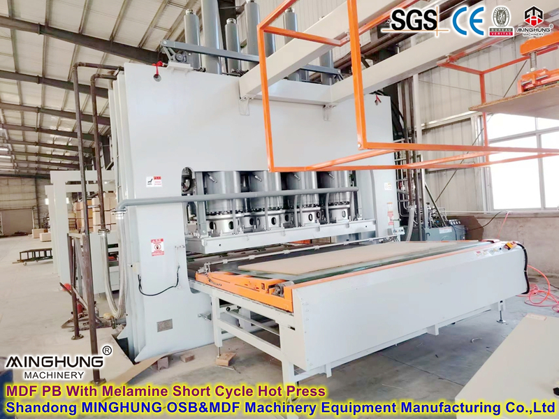MDF Melamin Kısa Çevrim Sıcak Pres Melamin Üretim Hattı ile MDF MDF Melaminli Kısa Çevrim Sıcak Pres