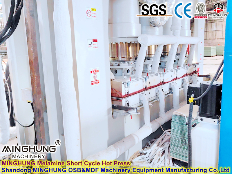 Melamin Yonga Levha Üretim Makinesi MINGHUNG Yonga Levha Melamin Kısa Çevrim Sıcak Pres MINGHUNG Otomatik Yonga Levha Melamin Kısa Çevrim Sıcak Pres