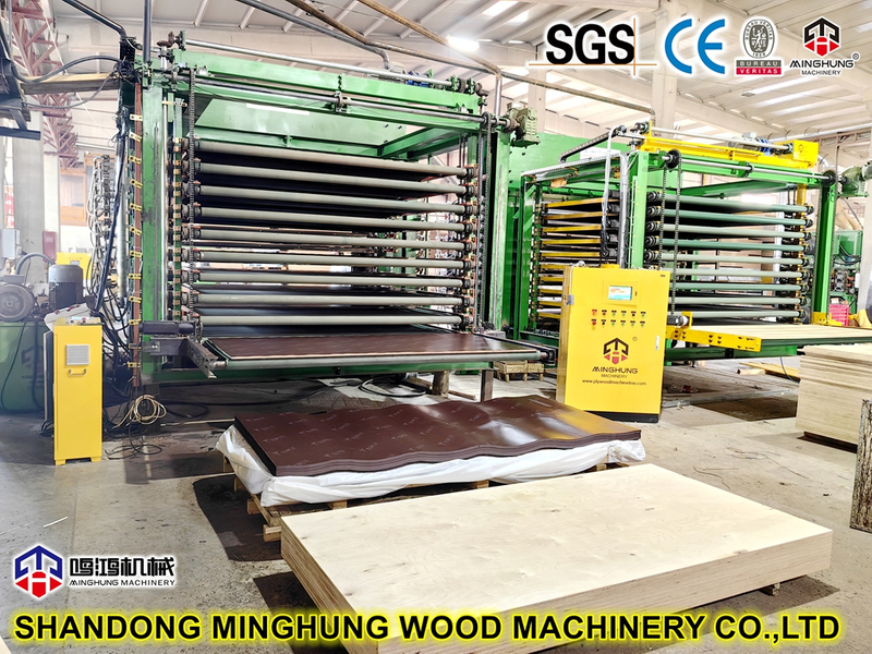 Melamin emdirilmiş film kağıt kaplama ahşap bazlı panel makinesiÇin Minghung Film Kaplı Sıcak Pres Makinası MINGHUNG Makinesinden kaymaz kontrplakinşaat kalıbı