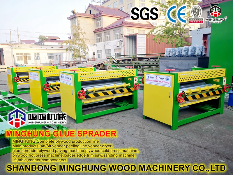 Shandong MINGHUNG Wood Machinery Co., Ltd, Çin'de kontrplak makinesinin ünlü bir üreticisidir, Ürünümüz Tutkal makinesinin 4 fit ve 8 fit, 4 fit makinenin silindir uzunluğu 1400 mm, 8 fit makinenin silindir uzunluğu 2700 mm ve üzerine tutkal kaplama işlevi vardır. Ahşap kaplamanın çift tarafı, böylece işçiler ahşap kaplamayı kontrplak boyutuna yerleştirebilir.