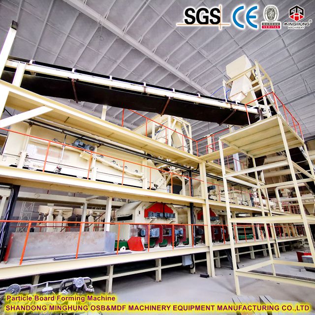 Şekillendirme İstasyonu/Şekillendirme Makinesi: Başka bir temel ekipman. Kurulun iç yapısını belirler. Tipik olarak, yüzey katmanındaki ince parçacıkları ve çekirdek katmanındaki kaba parçacıkları ayrı ayrı hassas bir şekilde yaymak için mekanik hava biçimli kompozit şekillendirme kafaları kullanır ve 'ince-kaba-ince' üç katmanlı bir mat yapı oluşturur. Bu, kartın mekanik özelliklerini (yüksek mukavemet ve iyi vida tutma kapasitesi gibi) sağlamanın anahtarıdır.