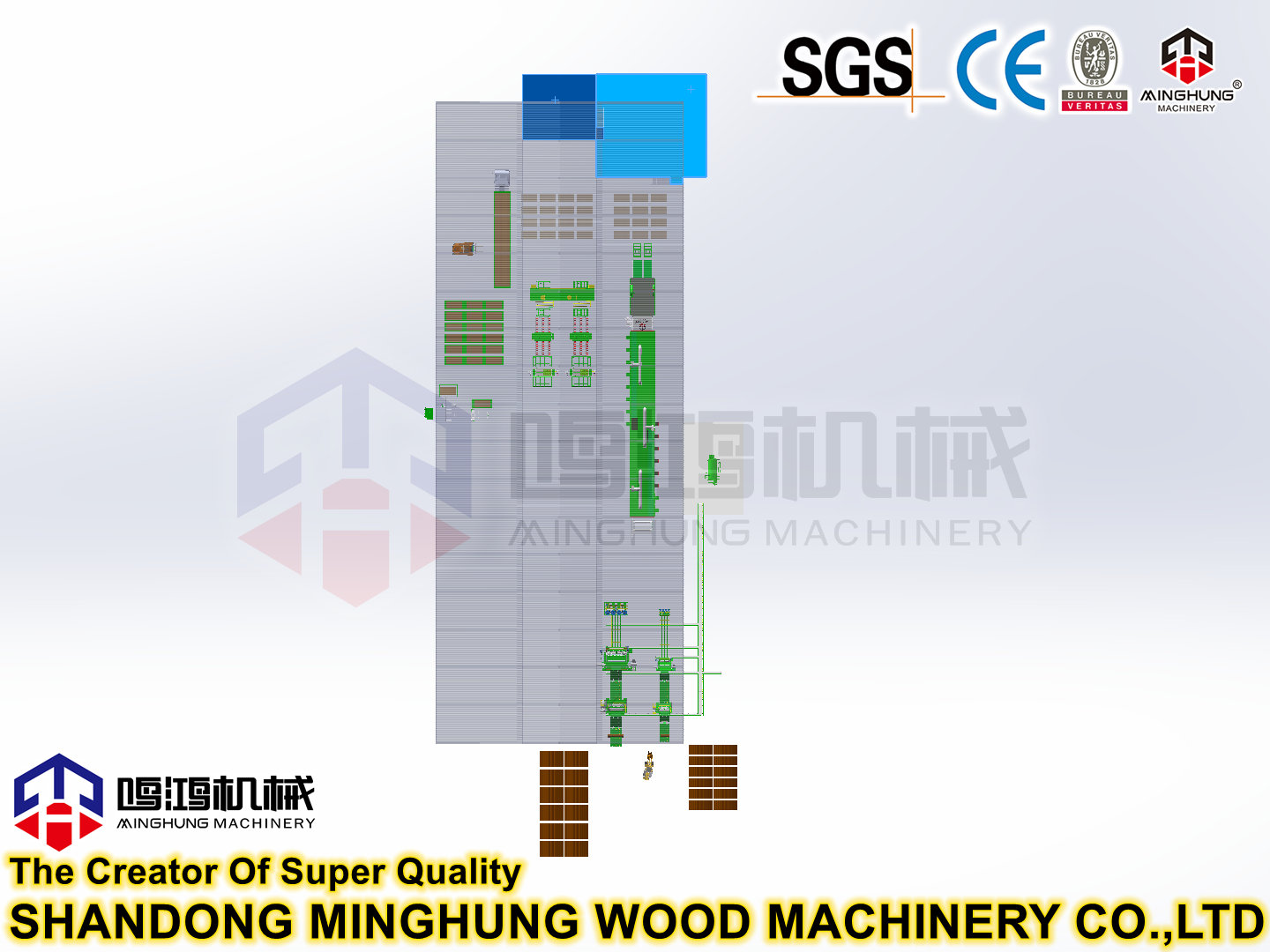 Shandong MINGHUNG Wood Machinery Co.,Ltd, Linyi şehrinde bulunan Çin'in ünlü kontrplak makinesi üreticisidir.
